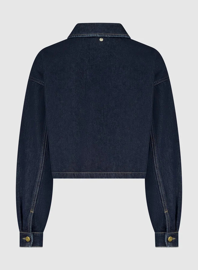 Krótka niebieska kurtka jeansowa w klasycznym, ciemnym odcieniu. Model zapinany na guziki z praktycznymi kieszeniami na piersi. Prosty fason sprawia, że łatwo dopasujesz ją do każdej stylizacji. Idealna na sezon przejściowy. Ponadczasowy element garderoby na co dzień.